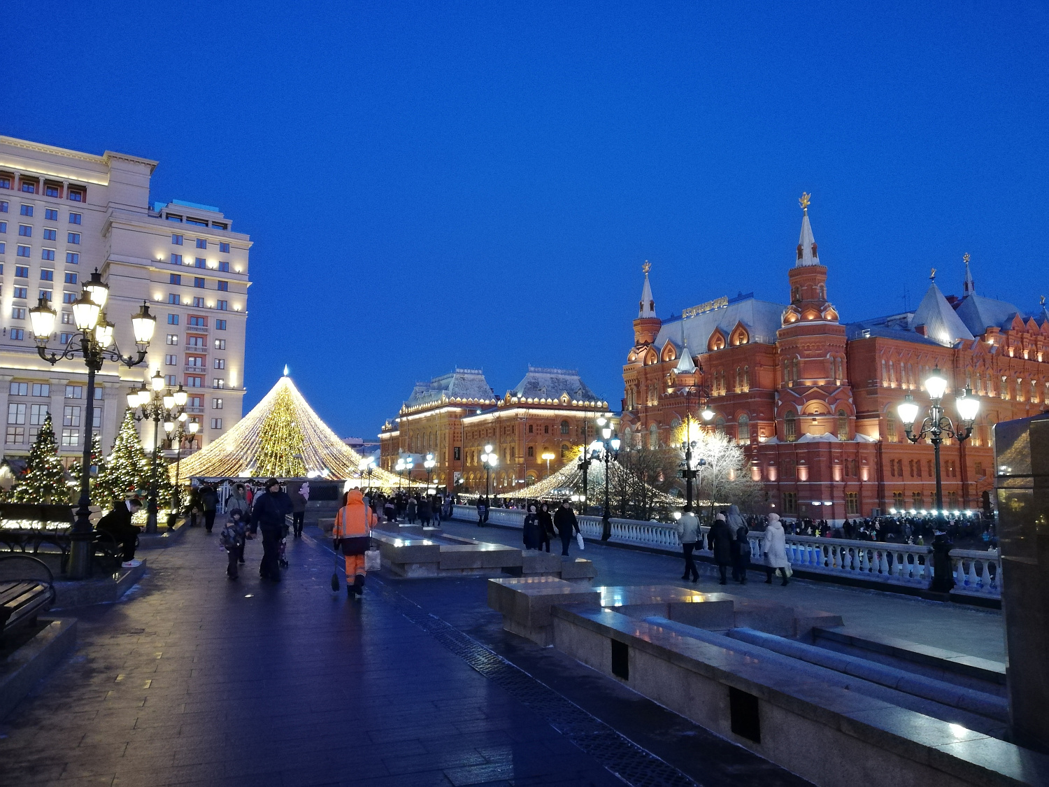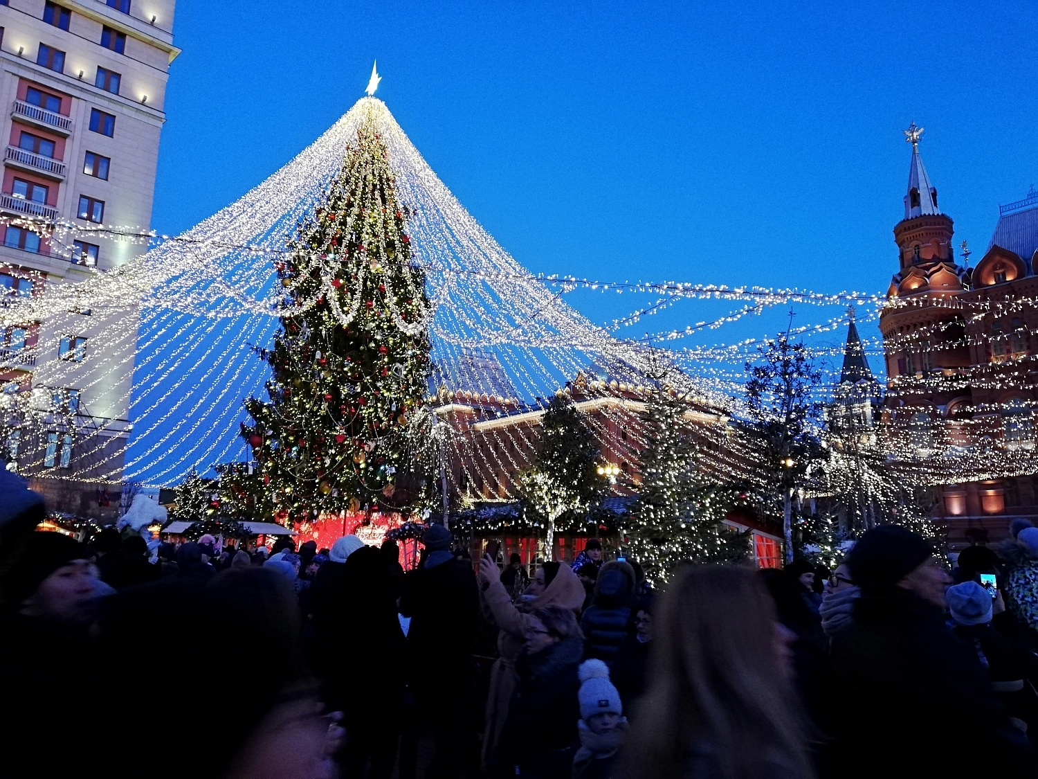 исторические и архитектурные памятники лучшего города Земли в праздничном убранстве: красота и величие архитектурно-художественного ансамбля Столицы никого не оставит равнодушным. Мемориальный комплекс Победы на Поклонной горе порадует ледяными фигурами и станет одной из основных площадок праздника. От красоты мегаполиса со смотровой площадки на Воробьевых горах захватывает дух - блестят купола храмов, на площадях великолепные ели соревнуются между собой нарядами, бульвары и проспекты сияют и играют разноцветными огнями, на улицах - народные гуляния, музыка и веселье...