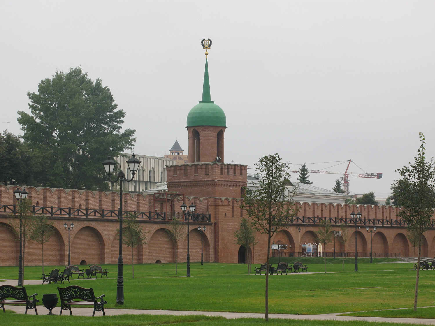 Тульский Кремль: История Тульского кремля началась в 1507 г., когда по указу великого князя Василия III в Туле приступили к сооружению «каменного города» – Тульской крепости. Строительство продолжалось тринадцать лет и завершилось в 1520 г. За время своего существования Тульский Кремль ни разу не сдавался неприятелю. В 1552 г. под стенами кремля было нанесено поражение войскам крымского хана Девлет-Гирея, что, во многом, обеспечило успех прославленного похода царя Ивана Грозного на Казань. В 1607 г. свыше четырех месяцев в Туле оборонялись восставшие во главе с Иваном Болотниковым против войска царя Василия Шуйского.В настоящее время высота стен около 10 метров. Толщина на южном и западном участках — 2.8 метра, на северном и восточном — 3.2 метра. Вдоль стен на высоте 6.5 метра идет боевой ход — площадка, откуда отражали врага защитники города. Протяженность стен составляет 1066.5 метра. На территории кремля расположены два собора: - Успенский собор с уникальной фресковой живописью ярославских живописцев XVIII в. и деревянным позолоченным иконостасом с 66 иконами. - Богоявленский собор, построенный в память воинов погибших в Отечественной войне 1812 года.