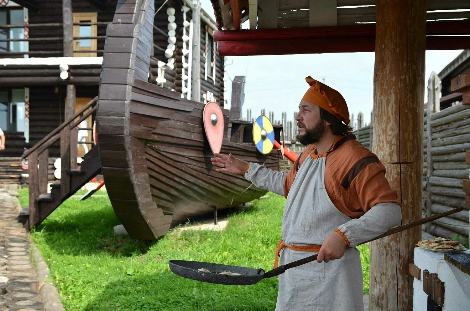 Посещение Военно-исторического комплекса «Варяжская дружина». Здесь царит дух эпохи средних веков. Неслучайно именно в «Варяжской дружине», у ее неприступных стен, каждый год проходит масштабный всероссийский фестиваль военно-исторической реконструкции «Русь дружинная». Здесь вы познакомитесь с обычаями и традициями Средневековья и попробуете традиционное блюдо, которое сейчас уже почти позабыто.