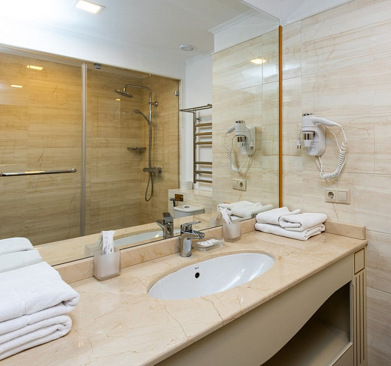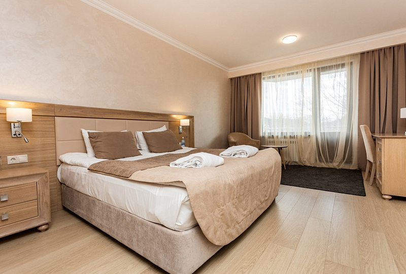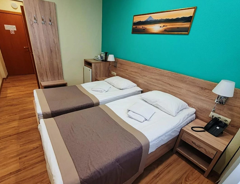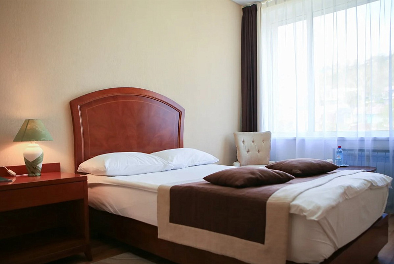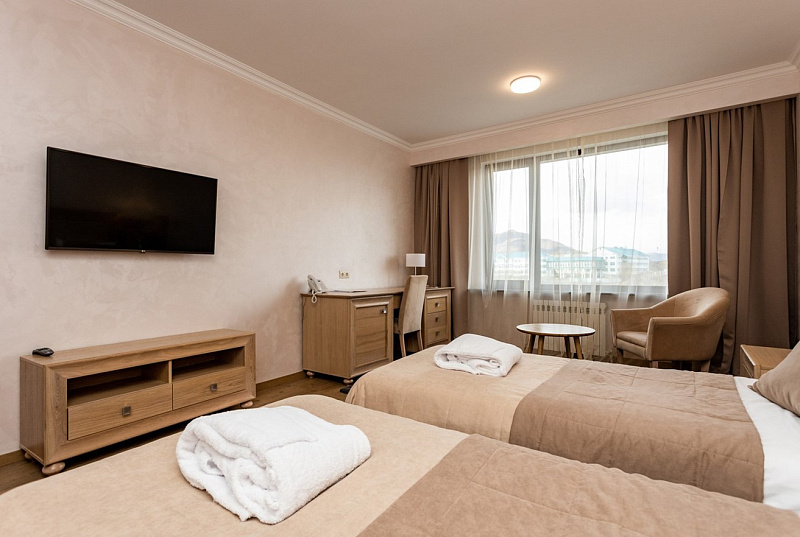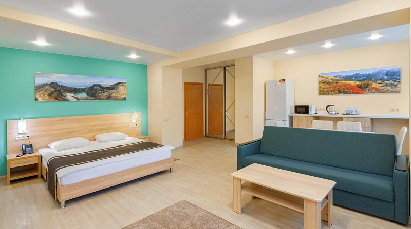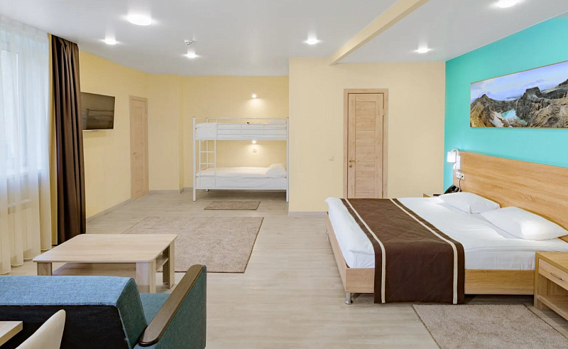В гостиничном комплексе «Спутник» есть все, чтобы комфортно провести время в отпуске или во время деловых поездок: уютные номера в двух корпусах и уединенные коттеджи, ресторан с разнообразным меню и караоке-паб, спа и бассейны с термальной водой, охраняемая парковка и зоны для барбекю. Это современный отель с качественным номерным фондом и комфортными условиями проживания. Корпус окружен деревьями, на прилегающей территории находятся бассейны, детская площадка, места для прогулок и отдыха. Все номера оснащены сейфом, одной двуспальной кроватью или двумя односпальными кроватями, телевизором со спутниковыми каналами, феном. В ванной есть гигиенические принадлежности, одноразовые тапочки, халаты, полотенца. В стоимость всех номеров входит проживание, завтрак, вода 0,5 л в день на гостя, одноразовые гигиенические принадлежности, одноразовые тапочки - 1 пара на гостя, смена постельного белья и полотенец, фен в номере, парковка автомобиля в специально отведенном месте, WI-FI. Спа-центр в гостиничном комплексе «Спутник» — это идеальное место, чтобы отдохнуть и расслабиться. Более 10 видов спа-программ и массажей, выполняемых квалифицированным специалистом. А также знаменитый душ-шарко. Все виды массажа: классический, релакс, детокс, тайский, стоунтерапия и многое другое. Для каждого гостя: русская баня, финская сауна, хаммам, соляная комната и два открытых бассейна с термальной водой. Ресторан гостиничного комплекса «Спутник» предлагает меню на основе европейской и местной кухонь. Здесь подается камчатский краб, свежие морепродукты и рыба, экологически чистое и богатое микроэлементами мясо оленины, сезонные блюда с целебными дикорастущими травами Камчатки. Завтрак в формате шведского стола: вы можете выбрать каши, хлопья, блюда из яиц, мясные, сырные, овощные нарезки, выпечку, фрукты. Для маленьких гостей есть детский игровой центр. Аниматоры устраивают для детей квесты, активные игры, аквагрим, дискотеки. Для детей постарше есть отдельная зона с настольными и компьютерными играми. Детский бассейн. Тренажёрный зал для готсей отеля.