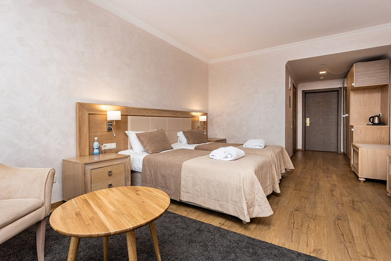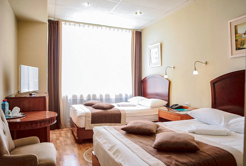 На территории Аквацентра гостиницы есть открытый теплый бассейн, а также джакузи с термальной водой.