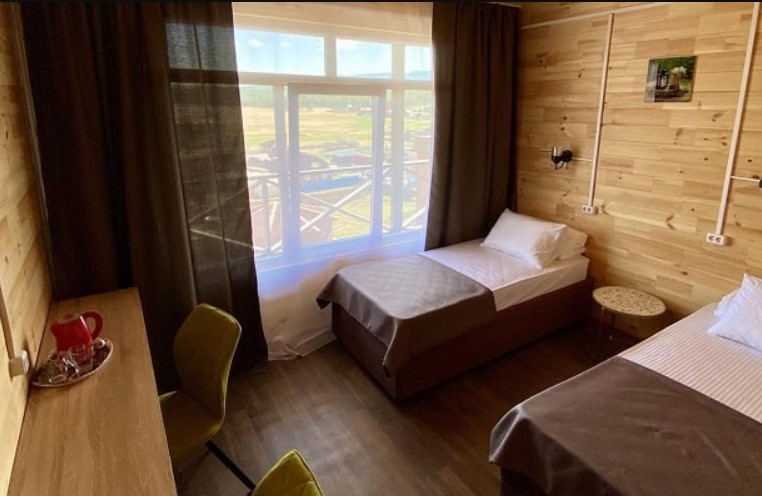 Новый комфортабельный отель на острове Ольхон. Уникальное здание отеля возведено из кирпича, а это гарантированно теплые номера с максимальной звуко- и шумо- изоляцией. В просторных комнатах предусмотрены спальная и гостевая зоны. Прекрасный панорамный вид на поселок, Байкал и горы доставит гостям настоящее удовольствие.