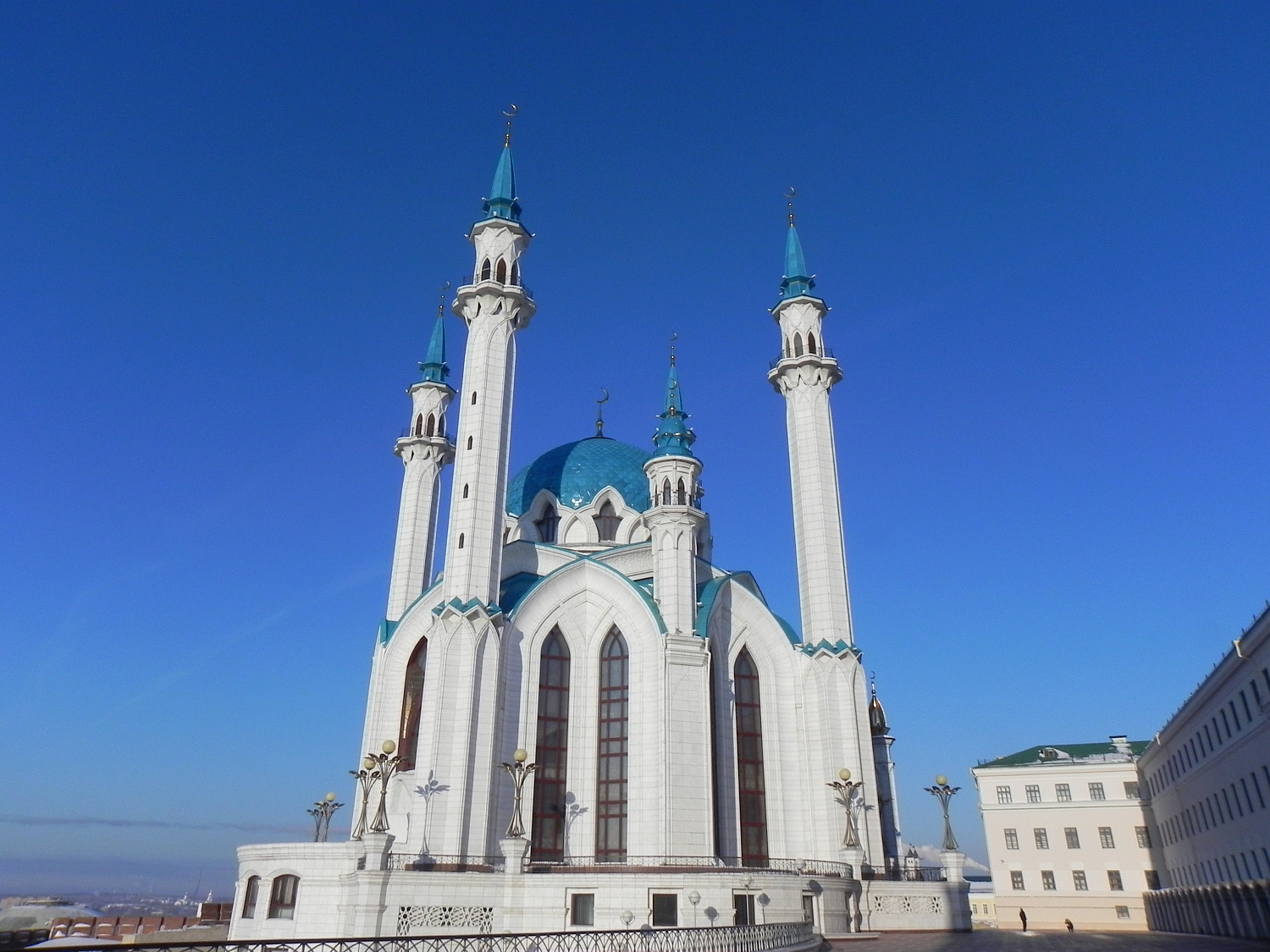 удивительное строение с множеством разноцветных куполов и минаретов, с блестящими в солнечных лучах золотыми крестами и полумесяцами.